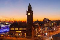 St.-Pauli landingsbruggen bij zonsondergang, Hamburg, Duitsland van Torsten Krüger