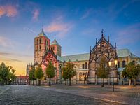 St.-Paulus-Dom in Münster, Duitsland bij zonsondergang