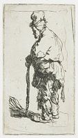 Staande bedelaar, leunend op een stok, naar links, Rembrandt van Rijn, 1628 - 1632