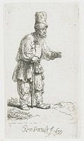 Staande boer met hoog hoofddeksel, leunend op een stok, Rembrandt van Rijn, 1639
