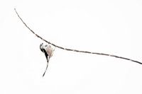 Deze staartmees at van de zaden van deze tak in de winter. Deze zaden zijn erg belangrijk voor kleine vogels in de winter. Door de foto over te belichten kon ik deze highkey foto maken, zo zit alle focus op de vogel en de tak!