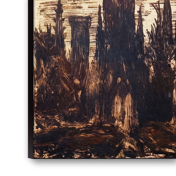 Mikalojus Konstantinas Ciurlionis.' "Stad (Torens)" is een mysterieus en meeslepend portret van een surrealistisch stadslandschap, gecreëerd met zijn unieke fusie van muzikale inspiratie, mystiek en symboliek. Čiurlionis nodigt toeschouwers uit in een surrealistische wereld van verbeelding en symboliek terwijl hij onderwerpen onderzoekt als urbanisme, spiritualiteit en de kosmische orde.