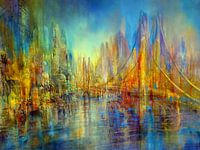 Koop dit abstracte kunstwerk Stad aan de rivier - de brug van Annette Schmucker op canvas, aluminium dibond, (ingelijste) fotoprint, behang en ArtFrame, op maat geprint in Fine-Art kwaliteit.