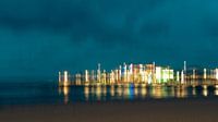 Een abstracte avondblik over de stad, waar licht en water samensmelten tot een zacht ritme van kleur en reflectie. De bewuste bewegingsonscherpte vangt niet de details van gebouwen, maar het gevoel van een stad die nooit stilstaat. Rust en dynamiek ontmoeten elkaar in dit verstilde moment tussen dag en nacht.