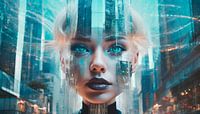 Stad met wolkenkrabbers en achtergrond vrouw