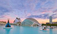 Stad van de Kunsten en Wetenschap in Valencia, Spanje met een mooie weerspiegeling in het water en een prachtige lucht.