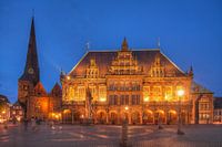 Oud stadhuis op Marktplein in de schemering, Bremen, Duitsland I Stadhuis op Marktplein in de schemering, Bremen, Germnany, Europa