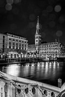 Elegante reling en uitzicht over de kleine Alster naar het stadhuis