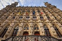 Het Gotische Stadhuis met de vele beelden aan de Grote Markt in Leuven (Vlaanderen, België).
