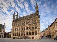 Het Gotische Stadhuis met de vele beelden aan de Grote Markt in Leuven (Vlaanderen, België).