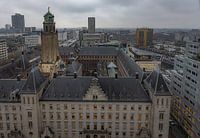 Stadhuis Rotterdam tijdens een grijze dag. Maar Rotterdam staat alles en typeert de rauwheid van de stad.