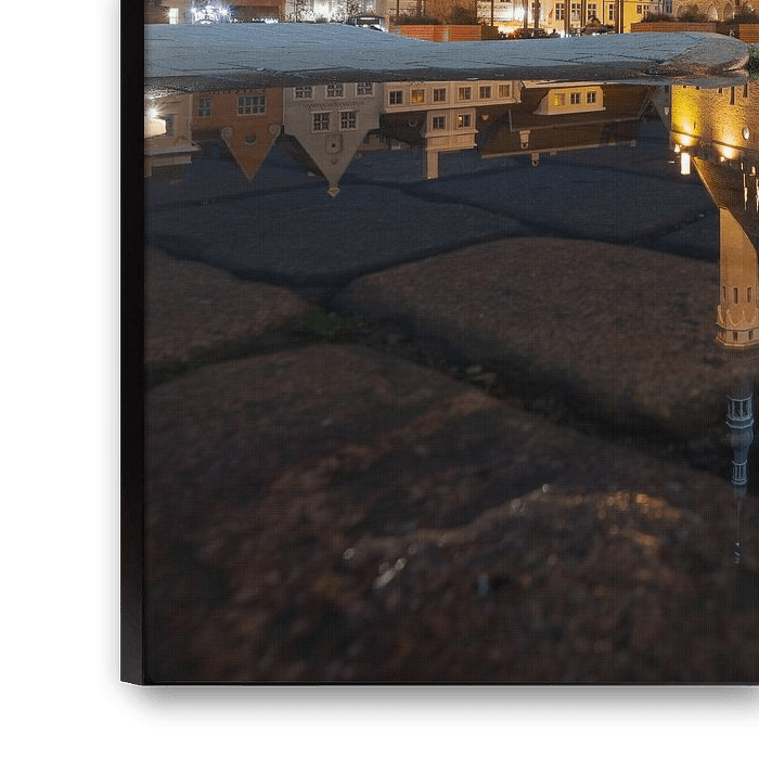 Stadhuis in Tallinn met weerspiegeling in plas in de avond