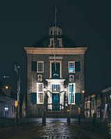 Het stadhuis heeft een bordes aan de voorzijde. Het dak is bekroond door een omlopend schilddak met open koepeltorentje. Het gebouw staat op een overkluizing van de Haven met aan de achterzijde een waaggebouw met gezwenkte topgevel