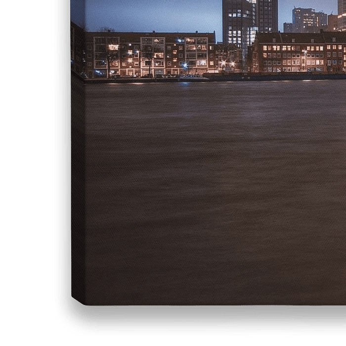 Stadsaanzicht van Rotterdam en de Erasmusbrug genomen op een regenachtige avond in Rotterdam Nederland.