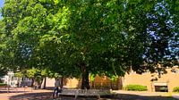 Deze indrukwekkende boom met rondom een heerlijk houten bankje staat in Den Haag en wel in de directe nabijheid van paleis Noordeinde. Heerlijke koele plek op een te warme zomerdag in de stad.