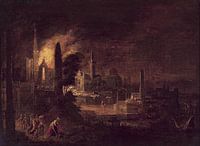 Koop dit schilderij Stadsbrand Troje, Daniël van Heil van Atelier Liesjes als reproductie op canvas, aluminium dibond, (ingelijste) fotoprint, behang en ArtFrame, op maat geprint in Fine-Art kwaliteit.