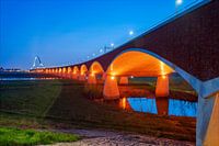 Stadsbrug, De oversteek, Nijmegen in het blauwe uur. Mooi verlichte brug over de Waal. Deze opname is haarscherp en een pronkstuk in uw huiskamer of op kantoor.
