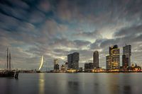 De zon komt langzaam op achter de Kop van Zuid. In de ochtend van eerste kerstdag was het alsof er een stille deken over de normaal zo drukke stad Rotterdam lag. Hoewel het erg koud was was het erg genieten van het gevoel dat de stad van ons was. In de woonflats op de Kop van Zuid is de eerste bedrijvigheid te zien door de vele lampjes die branden.