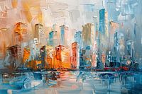 Stadsgezicht Schilderij | Skyline Spectrum - kleurrijk modern stadsgezicht