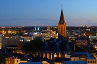 Stadsgezicht Utrecht met Jacobikerk. Uitzicht vanaf watertoren Lauwerhof.