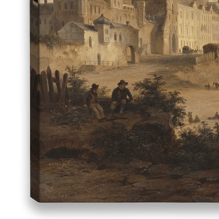 Koop dit vogel kunstwerk Stadsgezicht aan de Rijn, bij ondergaande zon, Bartholomeus Johannes van Hove van Teylers Museum op canvas, aluminium dibond, (ingelijste) fotoprint, behang en ArtFrame, op maat geprint in Fine-Art kwaliteit.