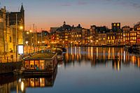 Stadsgezicht van Amsterdam aan de Amstel in Nederland bij avond