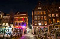 Stadsgezicht van Amsterdam bij nacht in Nederland