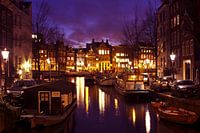 Stadsgezicht van Amsterdam bij nacht in Nederland