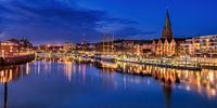 Havengezicht van de Hanzestad Bremen aan de Noordzee in de avond bij het blauwe uur.