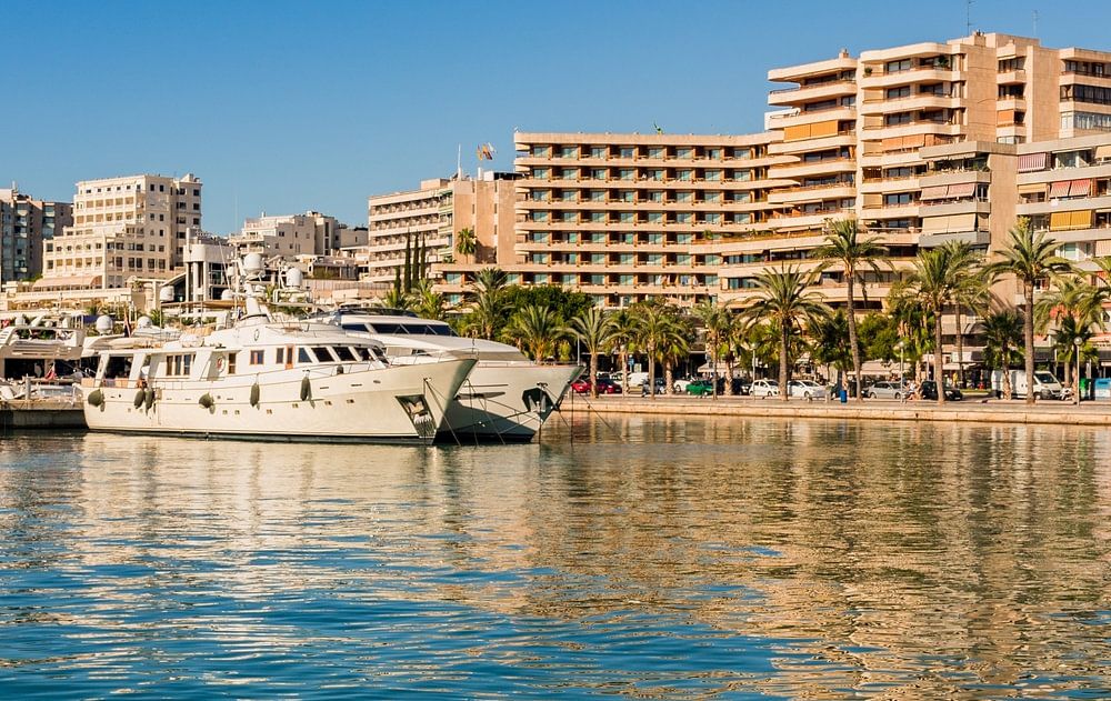 Prachtig stadsgezicht van Palma de Majorca met jachthaven, Spanje Middellandse Zee, Balearen