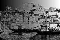 Stadsgezicht van Porto in Portgal, uitgevoerd in chroom. van Elinena