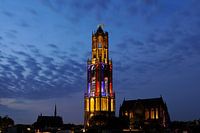 De 112,32 meter hoge gotische Domtoren is de hoogste kerktoren van Nederland en het hoogste gebouw van Utrecht. De toren hulde zich (telkens tijdelijk) in de Franse driekleur vanwege de start van de Tour de France in Utrecht.