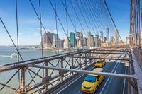 Een prachtig uitzicht op de skyline van Manhattan vanaf de Brooklyn Bridge. Een decoratief en tegelijkertijd klassiek stedelijk tafereel van New York City.