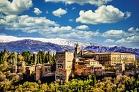 Kasteel van de Moren Alhambra in Granada Spanje met wolken en sneeuw van de Sierra Nevada