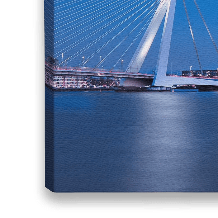 Koop de foto Stadslandschap Kop van Zuid bij schemering gezien vanaf de Maas van Tony Vingerhoets op canvas, aluminium dibond, (ingelijste) fotoprint, behang en ArtFrame, op maat geprint in Fine-Art kwaliteit.