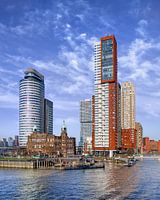 Stadslandschap Kop van Zuid Rotterdam met Montevideo wolkenkrabber en Hotel NY op een zonnige dag met dramatische wolken