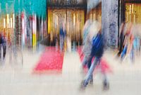 Een creatieve foto van winkelende mensen in de stad Groningen. Mijn camera heb ik tijdens de opname van dit tafereel expres bewogen in de lengte. Het zogenaamde icm effect.