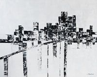 Elegant en puristisch, in een monochroom kleurenschema, teruggebracht tot zwart en wit, strekt de brug zich uit naar de oever van de skyline.