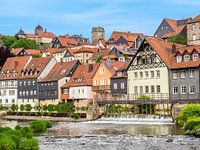 Stadsgezicht van Kronach in Beieren met rivier de Kronach (Haßlach)