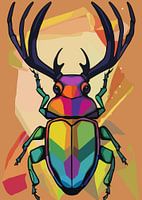 Deze pop-art vliegende kever verandert de krachtige onderkaken en gepantserde vorm van het insect in een opwindend visueel statement. Met scherpe grafische lijnen en een palet van lichtgevend groen, vurig rood en levendig paars wordt de kever een symbool van kracht en ingewikkelde schoonheid. Perfect voor liefhebbers van moderne kunst die houden van gedurfd en onverwacht, transformeert dit werk de nederige hertkever in een fascinerend popcultuuricoon.