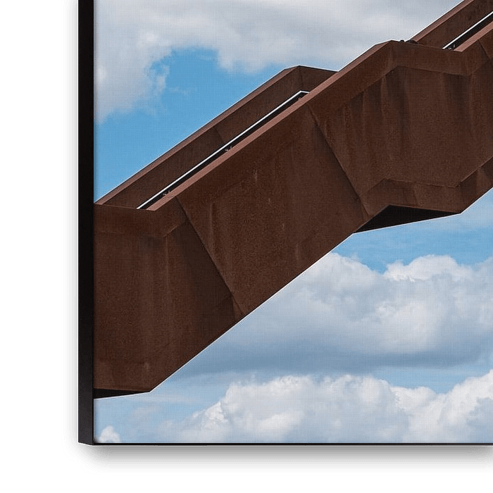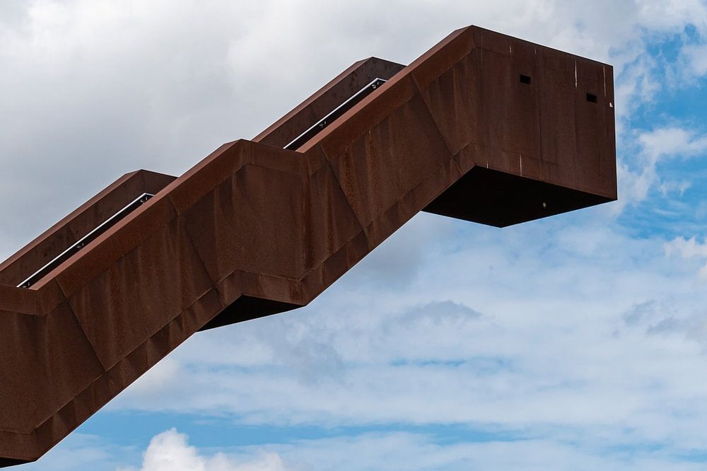 Deze metalen trap is een uitkijkpunt over de natuurlandschappen rond Leuven (België).