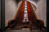 Deze prachtige oude houten roltrappen in Antwerpen zijn heel fotogeniek door hun symmetrie en de glimmende tegels aan de wand. Door het goede onderhoud zijn deze trappen prachtig bewaard gebleven en heeft het houtwerk zijn kleur behouden.