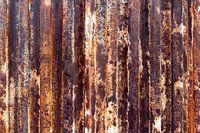 Een roestige metalen muur die een prachtig patroon vormt van bruintinten, interessante abstracte texturen en een industriële grunge look. Ik vind het verval van door de mens gemaakte structuren tegenover de kracht van de natuur fascinerend.