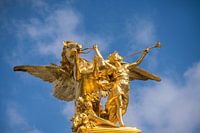 verguld bronzen beeld La renommee de la guerre / Fama van de oorlog door Leopold Steiner bij de Seinebrug Pont Alexandre III, Parijs, Frankrijk | verguld bronzen beeld van Fame bij de Seinebrug Pont Alexandre II, Parijs, Frankrijk