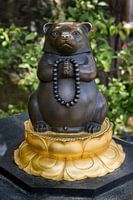 Standbeeld van Mujina, een toegewijde wasbeerhond uit de Japanse folklore in de tuin van een Japans boeddhistische tempel