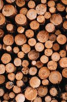 Een stapel boomstammen in het bos in Austerlitz, in het Utrechtse Heuvelrug Nationaal Park in de provincie Utrecht.
