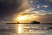 Zonsondergang op het strand van Sankt Peter-Ording bij eb