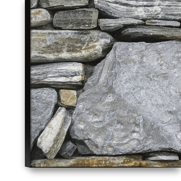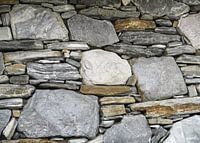 Stenen uit de natuur zijn gestapeld en vormen een decoratieve wand.