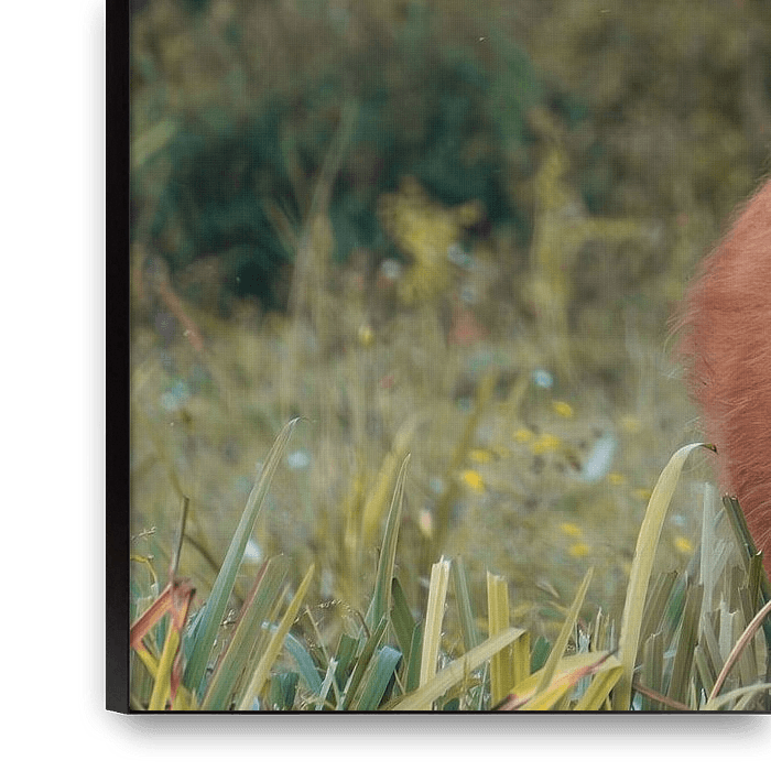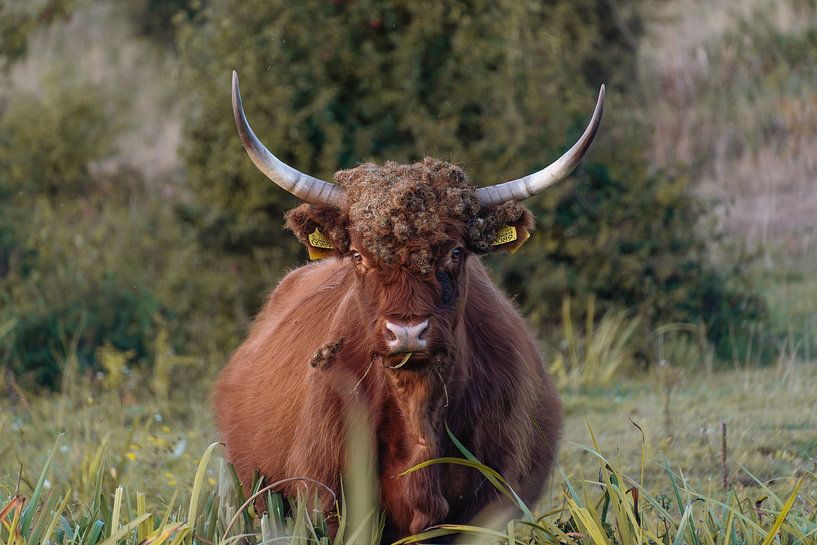 Koop dit schotse hooglander kunstwerk Stare down van Eline Huizenga op canvas, aluminium dibond, (ingelijste) fotoprint, behang en ArtFrame, op maat geprint in Fine-Art kwaliteit.
