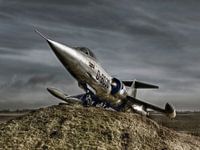Ergens op Goeree Overflakkee heeft een bedrijf op zijn erf een oude Starfighter op een terp gezet. Met de juiste groothoeklens en kleurfilter wordt het reikwie nog indrukwekkender.